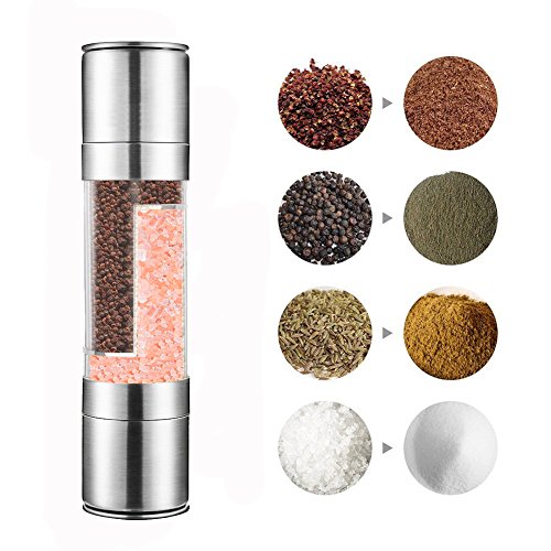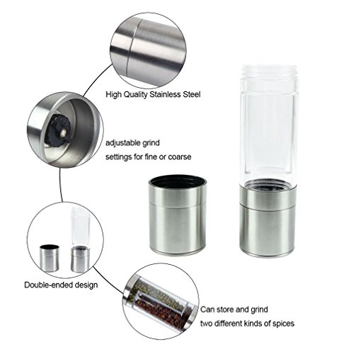 Stainless Steel Salt and Pepper Grinder, CYDEL 2 in 1 Manual Pepper Mill and Salt Mill with Adjustable Ceramic Grinder Core, Dual Stainless Steel Pepper and Salt Shakers