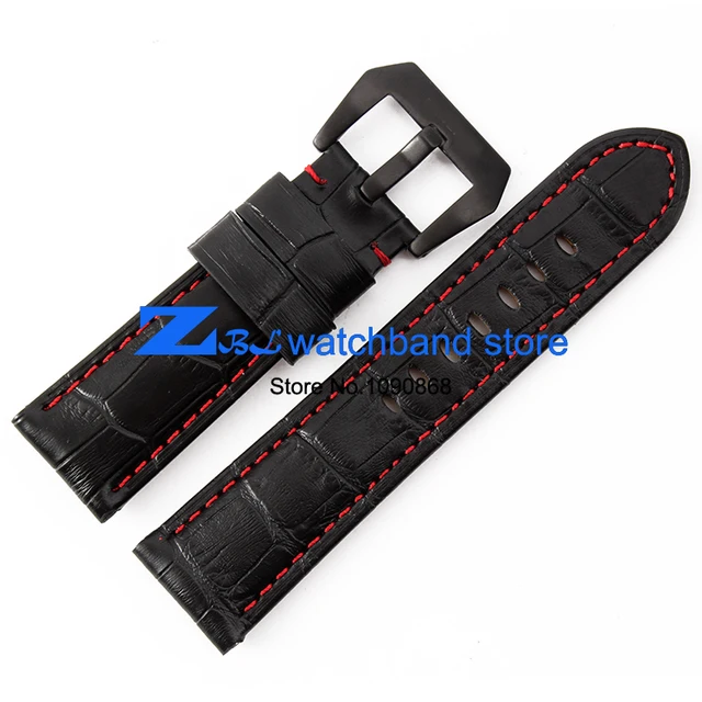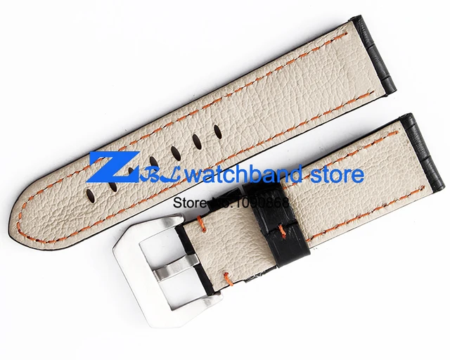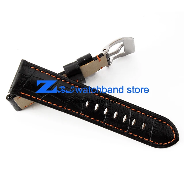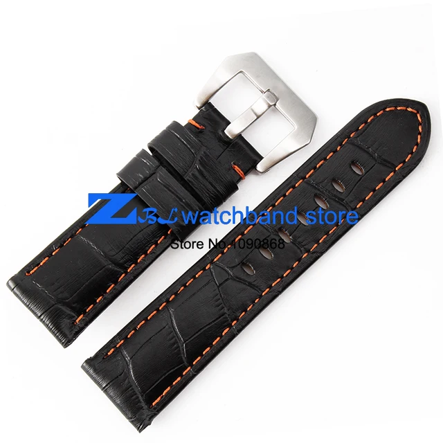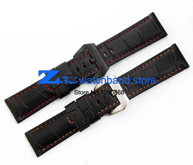 | [해외]정품 가죽 손목 시계 폭 24 미리메터 시계 밴드 블랙 레드 orange 스티치 남성 손목 시계 스트랩 핀 버클 |