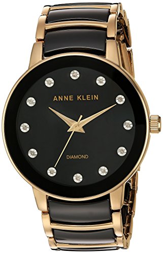 Anne Klein Women's AK/2672BKGB Diamond-Accented Gold-Tone and Black Ceramic Bracelet Watch