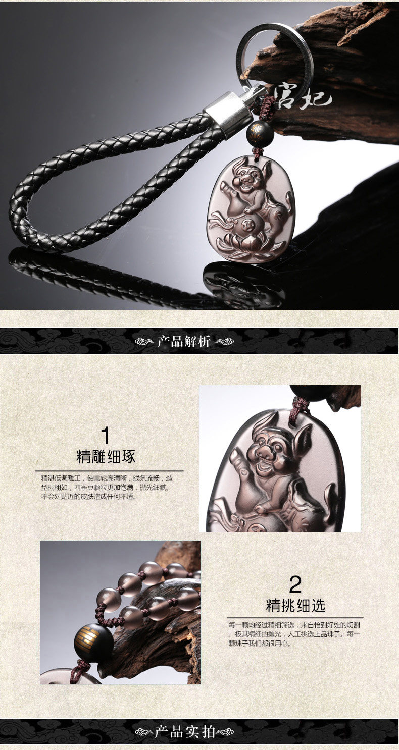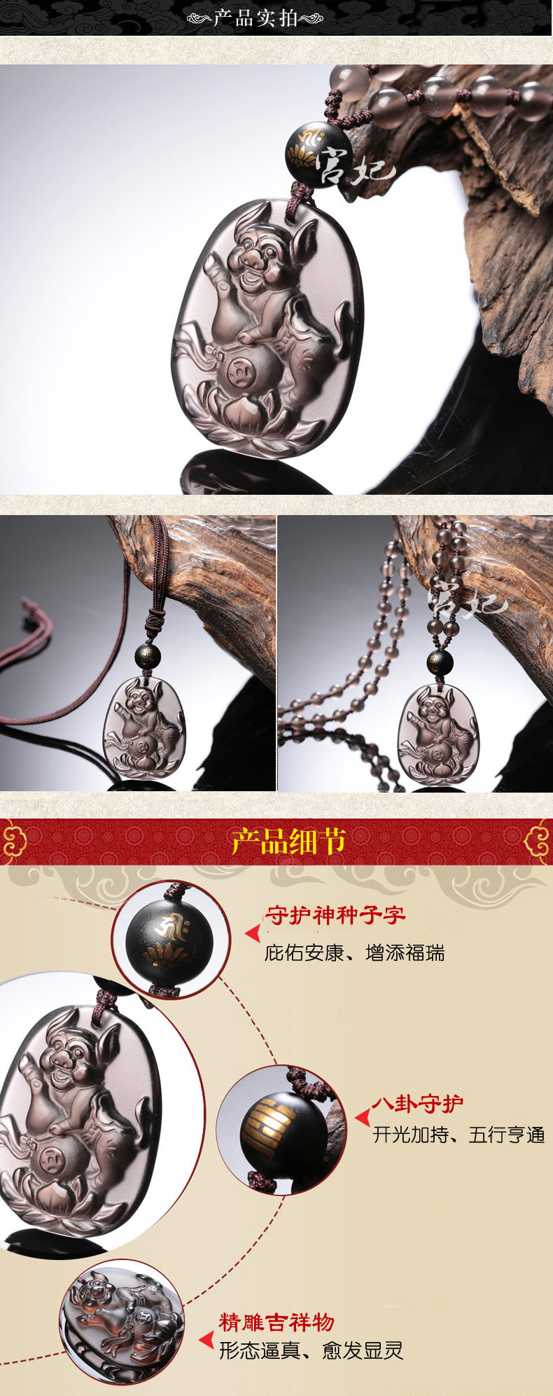 开光护身符生肖属羊2017年开运吉祥物 财福莲猪黑曜石吊坠男女款