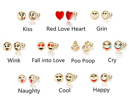 18K Gold Plated Lovely Face Emoji Stud Earring Set for Daughter Children Gifts