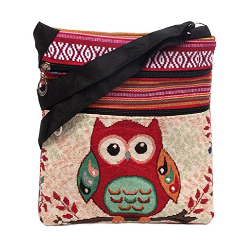 -. Title : Aibearty Boho Canvas Stripe Owl Crossbody Bag Tribal Little Purse Cell Phone Pouch