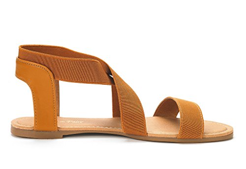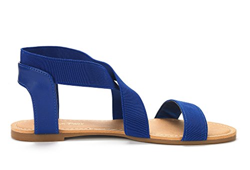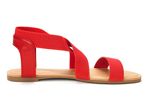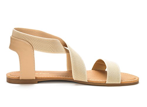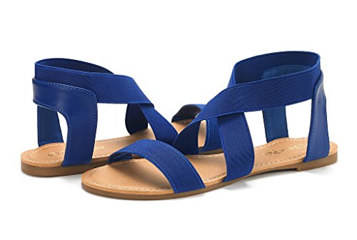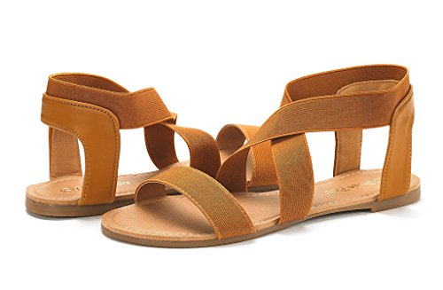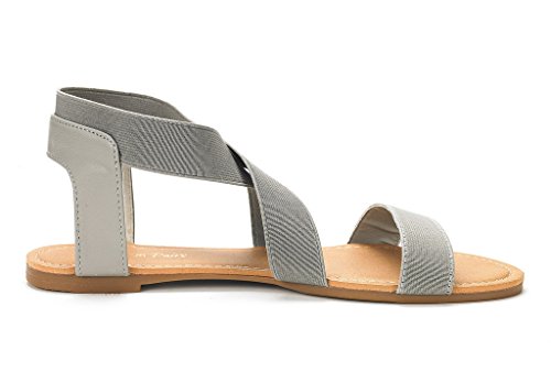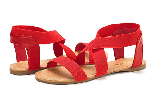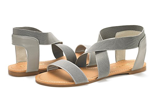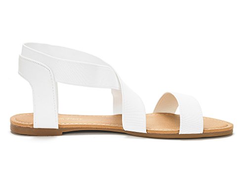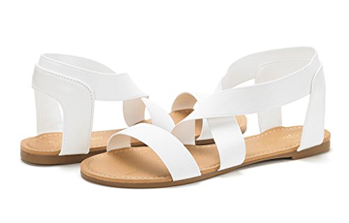 DREAM PAIRS ELATICA-6 Women Summer Fashion Design Open -Toe Elastic Ankle Strap Gladiator Flat ...