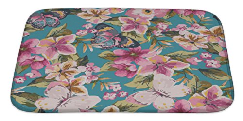 Gear New Butterfly with Floral Pattern on Blue Bath Rug Mat No Slip Microfiber Memory Foam