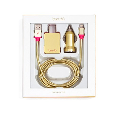 -. Title : Bando Charger Set with Wall and Car Charger and USB Cord for Iphone 5/5s/5c, 6/6s/Plus - Retail Packaging - Metallic Gold