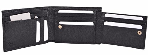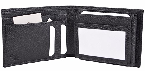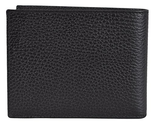 -. Binding : Apparel -. Brand : -. Color : Black -. Department : mens -. EAN : 0636655237494 -. Feature : Pebbled Black Calf Leather / "" Embossed Logo / 12 Credit Card Slots, 2 Long Bill Slots / Measures 5" x 4" / What is Included: Wallet, Box, Tags and Controllato Card -. ProductGroup : Apparel -. ProductTypeName : ACCESSORY -. Size : One Size -. Title : Men's Black Leather Embossed Logo Trifold Passcase ID Wallet -. UPC : 636655237494