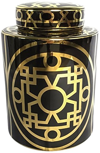 Benzara Classic Decorative Ceramic Covered Jar, Black and Gold
