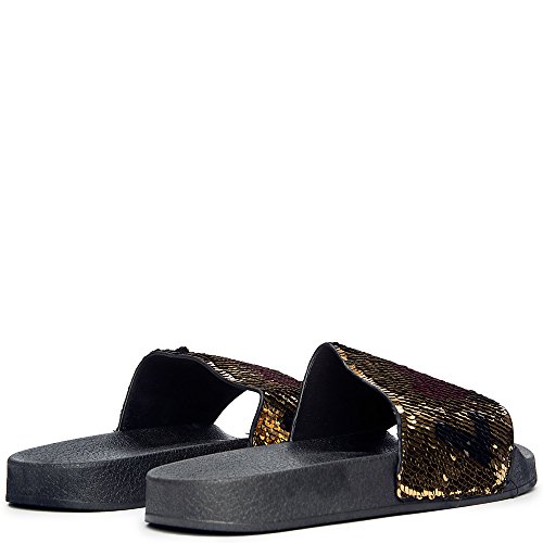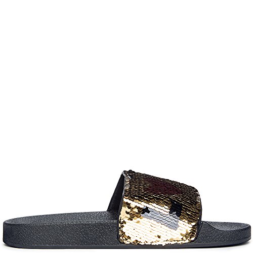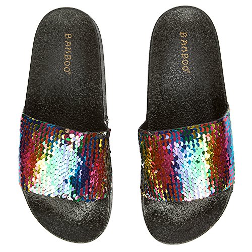 Studio : Bamboo Publisher : Bamboo Binding : Apparel Product Description You'll never be fully dressed without a little sparkle! Try out these slides. They have a yellow sequinned strap and a padded foot-bed to help complete your girly-girl look. Spread love not hate with these Bamboo slides. 0