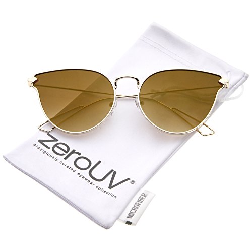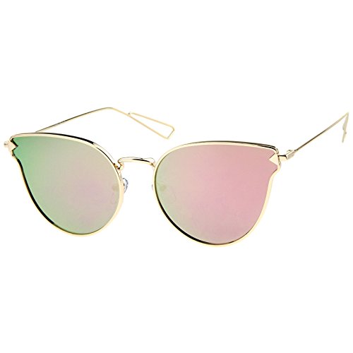 -. Title : zeroUV - Women's Metal Frame Arrow Temples Color Mirror Flat Lens Cat Eye Sunglasses 58mm
