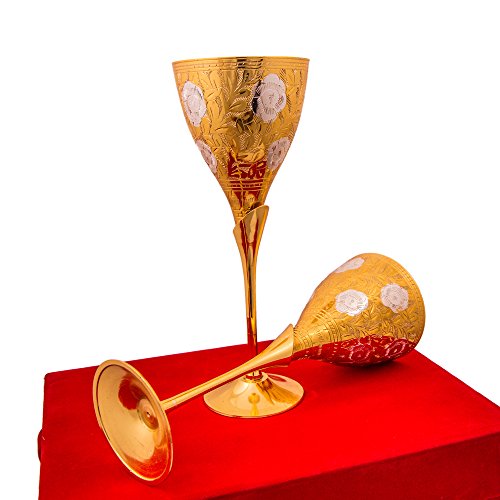 Jaipur Ace Royal Party Gifts Silver And Gold Plated Wine Glass/Goblet Set With Beautiful Red Velvet Box