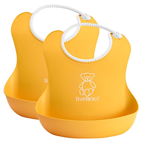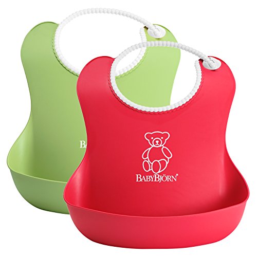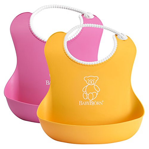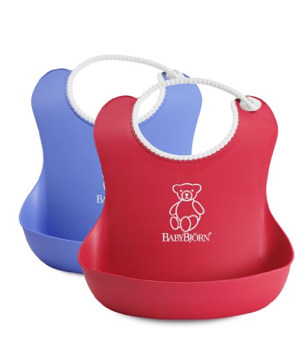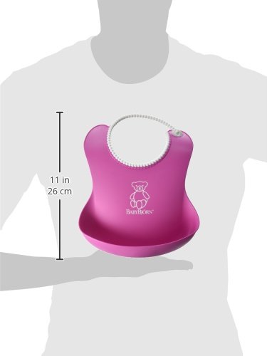 The BabyBjorn soft bib is soft and comfortable plastic bib catches food that misses your child's mouth. The bib is easy to clean and the fast-drying plastic means that you can use it again quickly. Suitable from four months.
