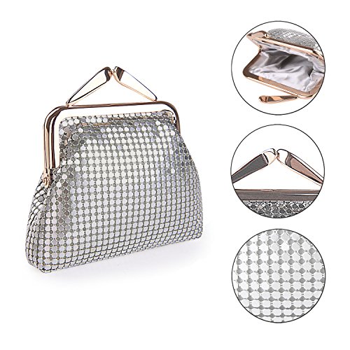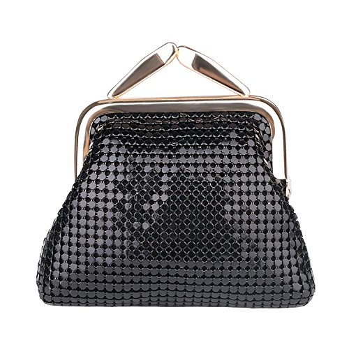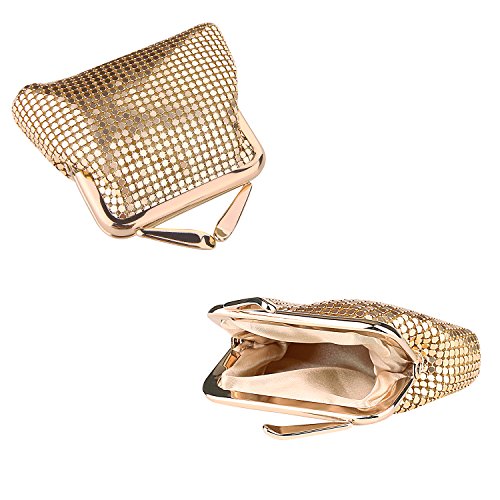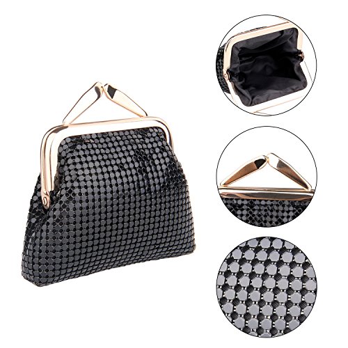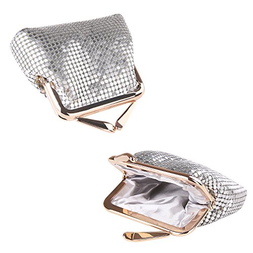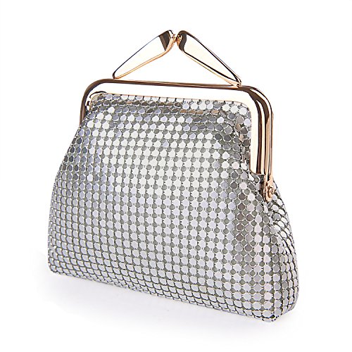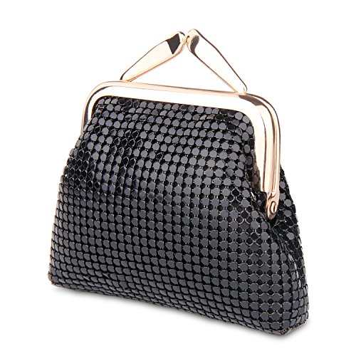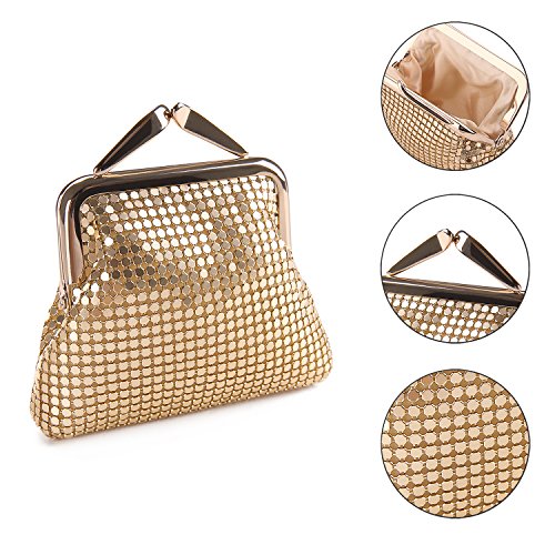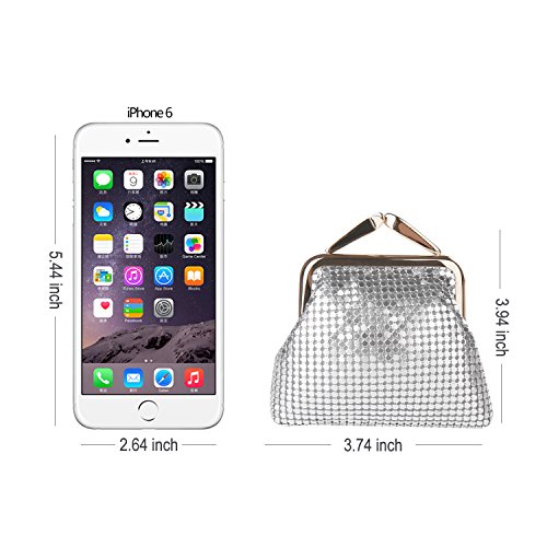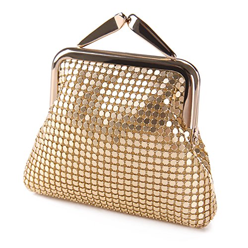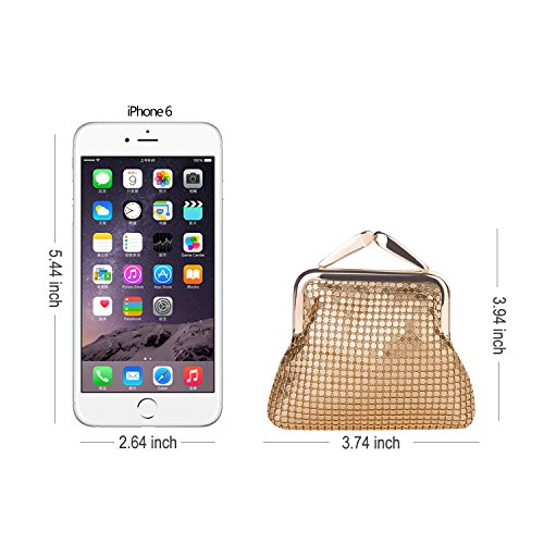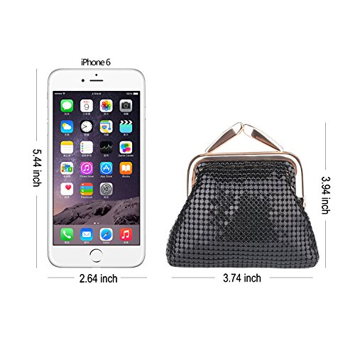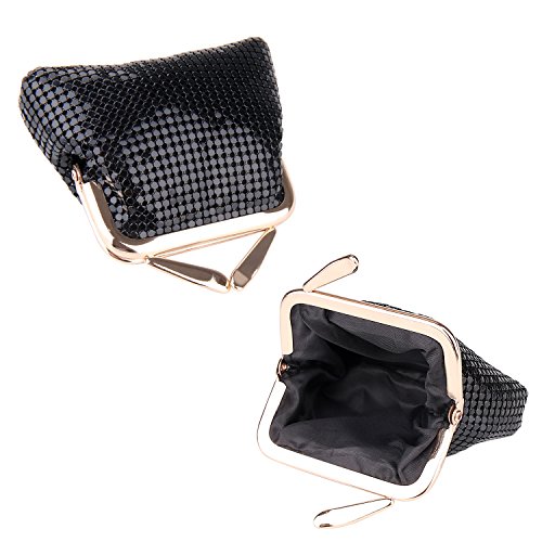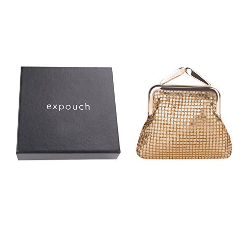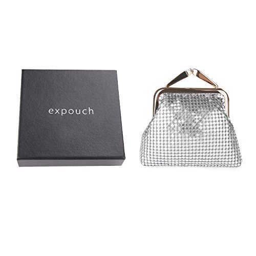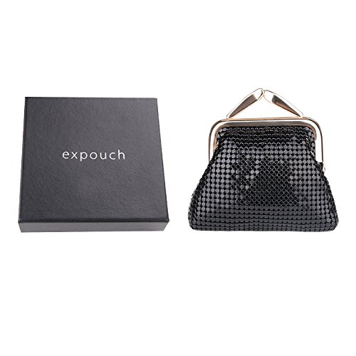Specifications of Expouch coin purse Color: Black,Gold, Rose gold, Silver Weight:0.11lb (50g) Dimension:3.74 X 3.94X0.79inch(9.5X10X2cm) Material: Aluminum Metal Mesh, silk lining Open method: Clasp kiss-lock closure Function:Mini wallet, Coin Purse.