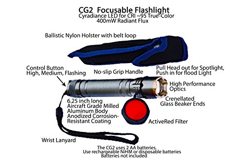 Nulumina CYRAD CG2 Focusable Broad-Spectra Flashlight with True-Color revealing LED and Exclusive Mesopic ActiveRed Night Vision Filter