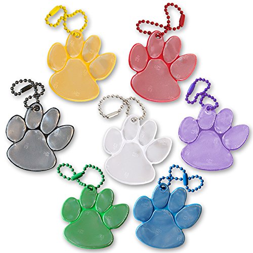 This paw print reflector are perfect for pet and animal lovers to hang on dog leashes as well as backpacks, jackets, and bags. Several different colors to match your mood, wardrobe and your dog or the spirit wear color for your favorite team. The universal paw print design matches many mascots, e.g. tiger, wildcat, cougar, wolverine, lion, panther, bulldog, wolf or bear.