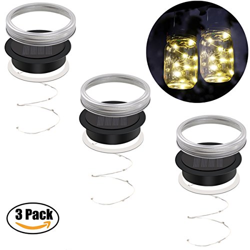 Mason Jar Lights Lids Waterproof, iThird Solar String Lights Outdoor Warm White 3 Pack 10 LED for Christmas Halloween Party Wedding Deck Garden Decorative Lighting(Jars Not Included)