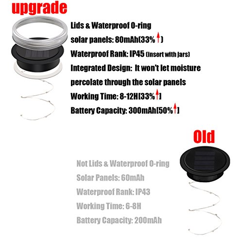 - 【Integrated Design & Better Waterproof Rank】Waterproof rank is IP45. Integrated design won't let moisture percolate through the solar panels and O-shape seal ring won't let moisture get into the jars. Good idea for DIY outdoor garden patio deck wedding party Christmas decorations