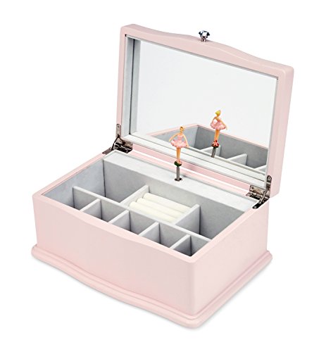 BEAUTIFUL MELODY - Upon opening top lid, this classy wooden jewelry box plays the tune "Swan Lake" while the delightful ballerina twirls to its harmonious tune.