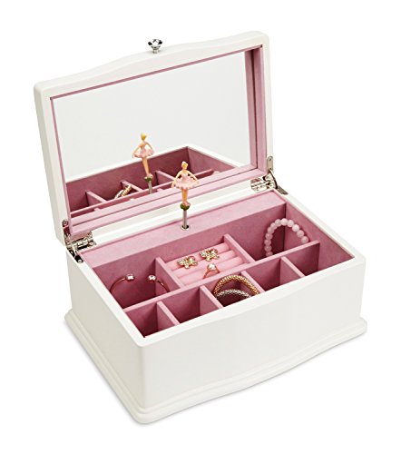 STUNNING DESIGN - Charming girls musical jewelry box carefully carved with intricate curvature and decorative faux diamond sparkle knob pull. The perfect gift for your princess of any age.