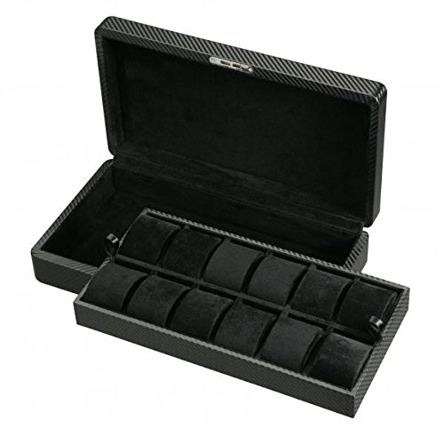 -. Title : Men's 12 Watch Box Storage and Removable Tray in Patterned Black