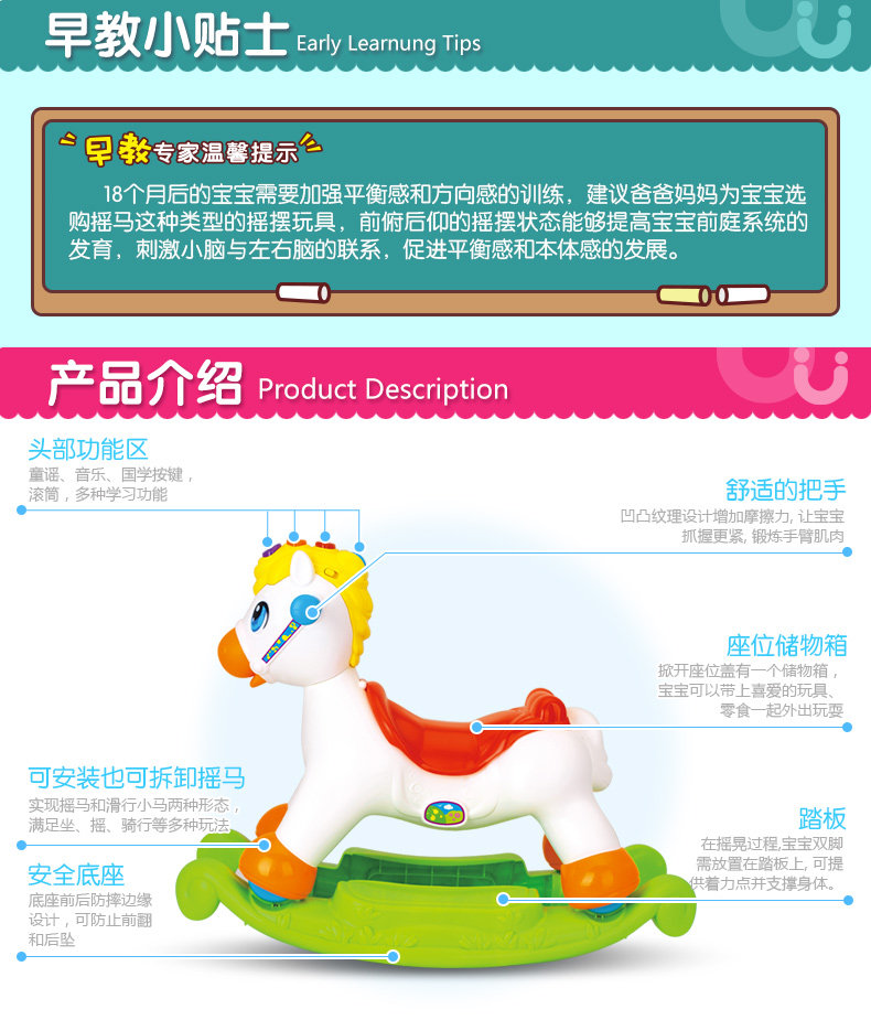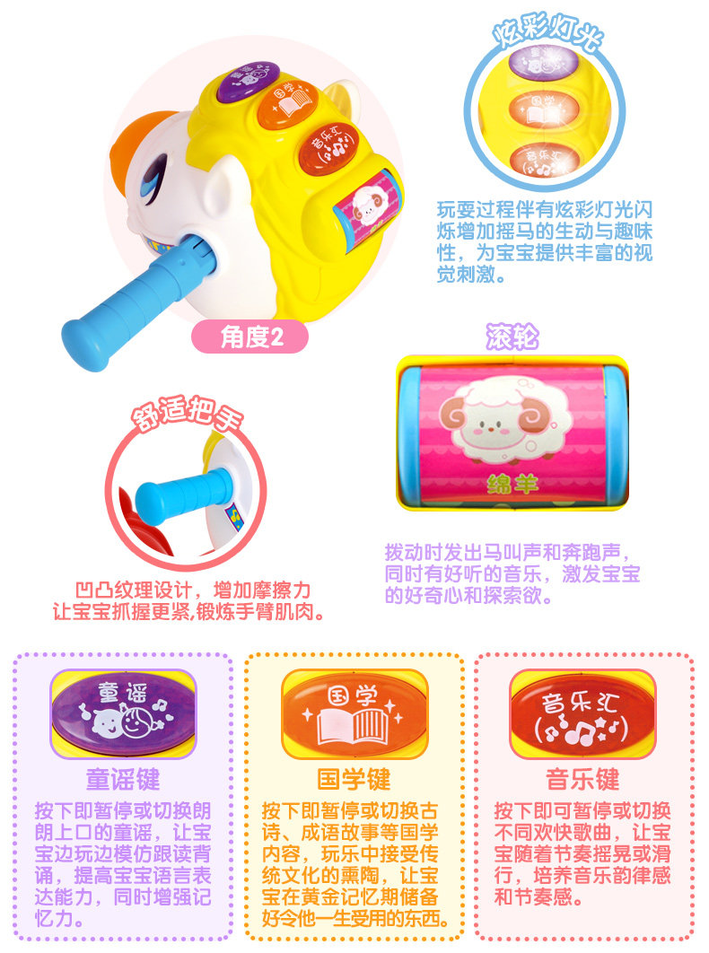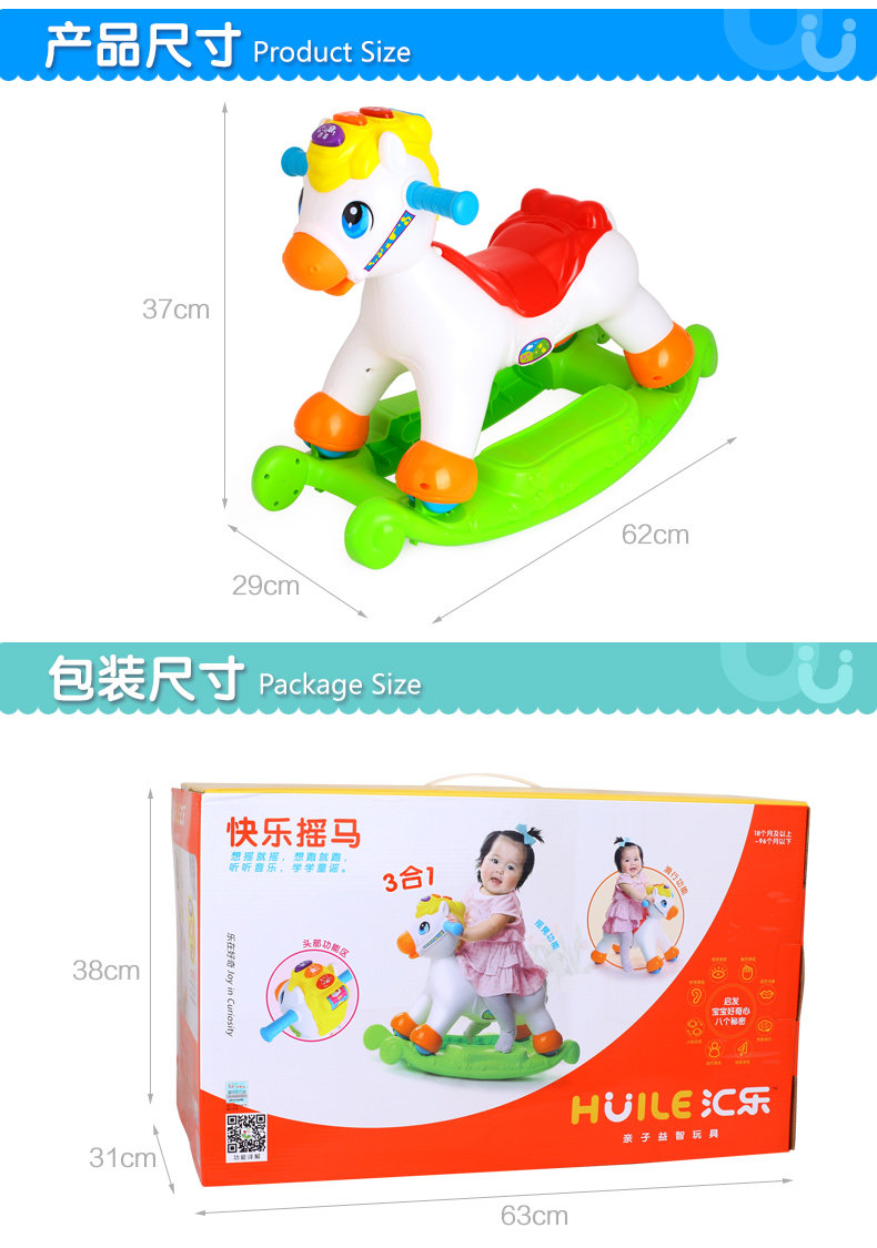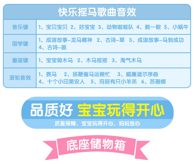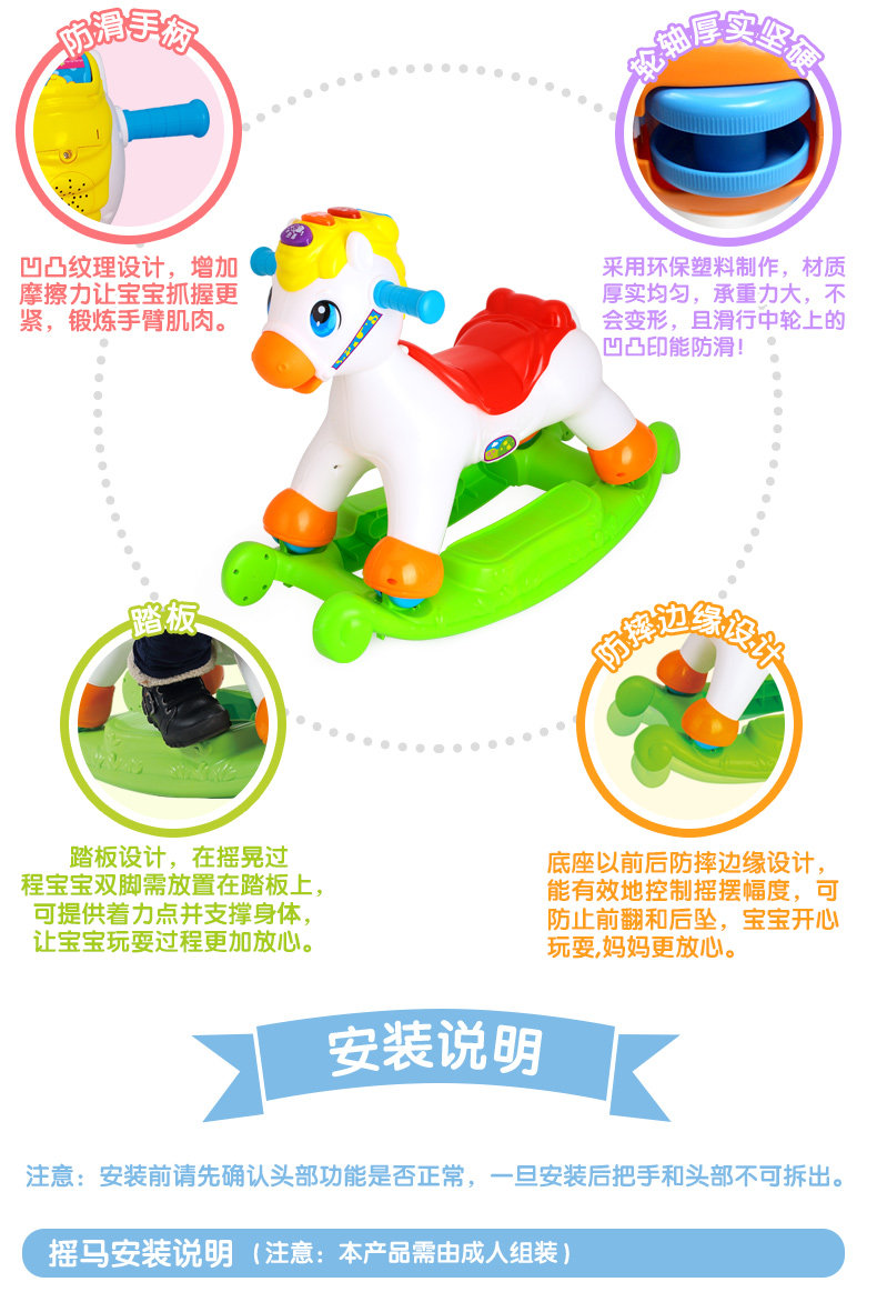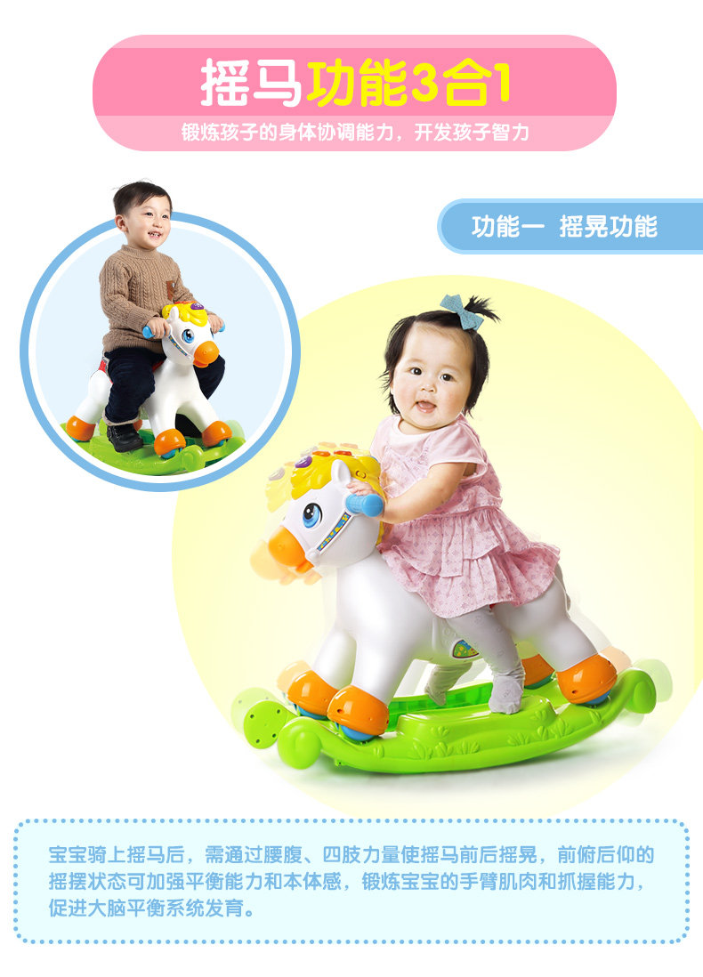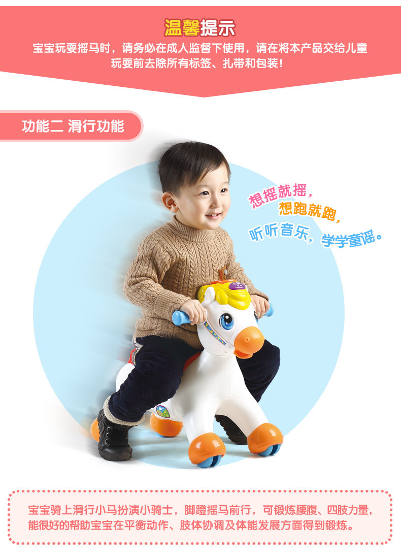 快乐摇摇马儿童音乐小木马摇摇马塑料滑行车两用玩具3-6岁