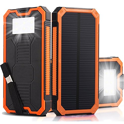 -. Title : Solar Charger, Solar Power Bank 12000mAh External Backup Battery Pack Dual USB Portable Solar Panel Phone Charger with LED Lights Carabiner for Emergency Outdoor Camping iPhone and More