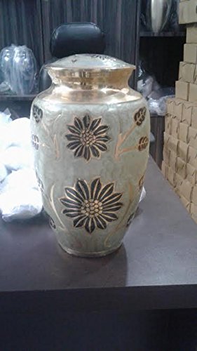 White Funeral Urn by Liliane Memorials - Cremation Urn for Human Ashes - Hand Made in Brass -Suitable for Cemetery Burial or Niche- Large Size fits...