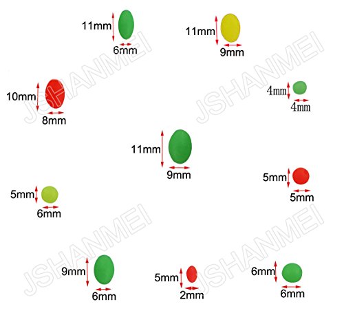 -. Feature : 1)Package: 1000pcs/box / 2)Soft Fishing Beads / 3)Plastic Oval Shaped Beads Fishing Lures / 4)Color: Green,Yellow,Red / 5)It is Suitable for Stream, Pool, Lake, River Fishing and So On.