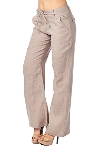 -. Title : High Style Women's Button Closure Wide Leg 100% linen pants with drawstring waist