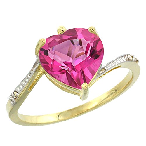 -. Title : 10K Yellow Gold Natural Pink Topaz Ring Heart 9x9mm Diamond Accent, sizes 5-10