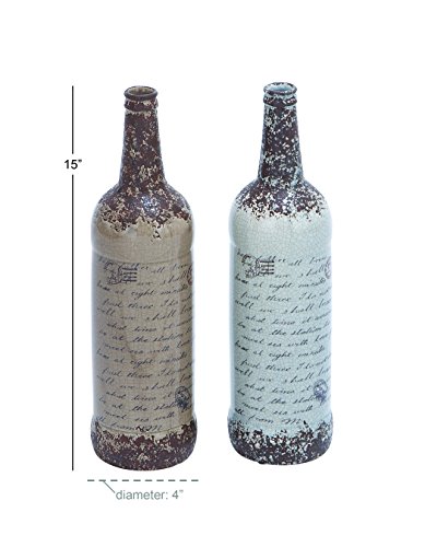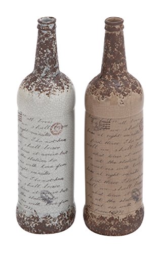 A sleek and classy set of ceramic vases, it has a timeless appeal. Featuring a bottle shaped design these vases are painted in soothing shades of brown and white. They feature intricate carvings in a deep red tone. The italicized writings on the bottles give them a personalized and elegant look. It has been skillfully crafted by utilizing high-quality materials. This ensures that they last for a long time to come. Place them in your living room, patio or your coffee table it will blend in everywhere.Feature