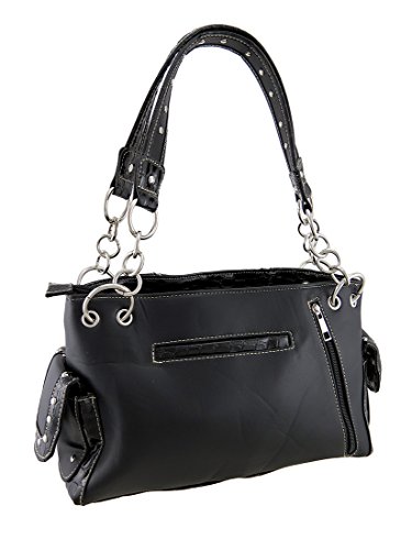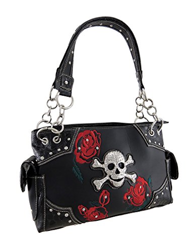 Vinyl Shoulder Handbags Rhinestone Skull And Embroidered Red Roses Concealed Carry Handbag Red