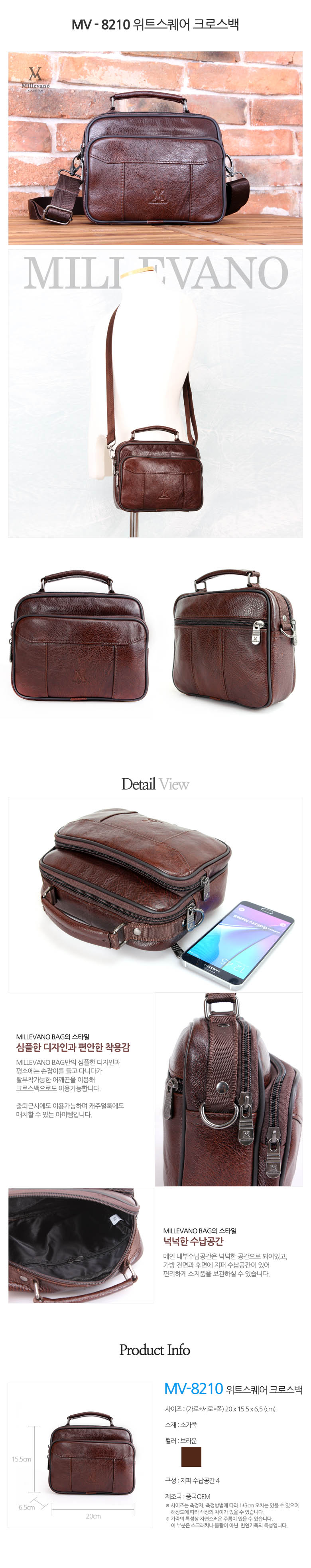 MV-8210 Wit Square Cross Bag Briefcase Leather Men's Milleverano