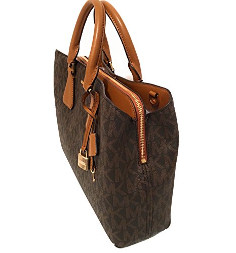 Michael Kors Camille Savannah Large Satchel Brown MK Acorn Crossbody Bag
