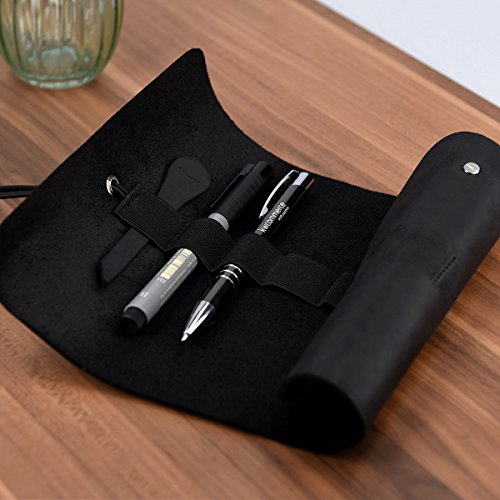 kalibri Pencil case pen wrap of leather - Genuine leather writing case pencil case pen brush cable wire - Vintage pen holder case in black