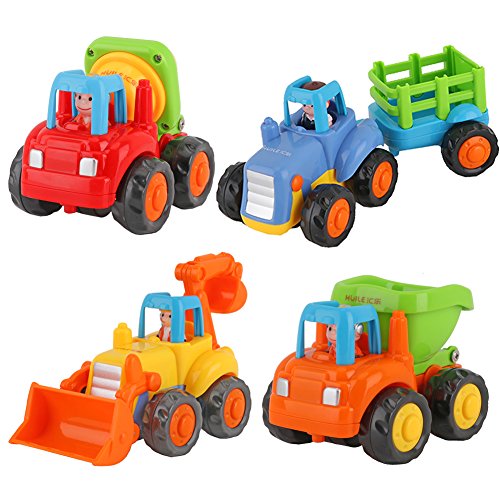 *Set of 4 play vehicles,including 1 dump truck,1 cement mixer,1 bulldozer,and 1 tractor with a detachable trailer.