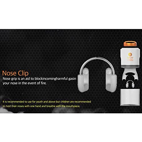 -. Feature : It is an emergency mask used to evacuate in the event of a fire.As an absorbed filter mask,it performes clean filtration of CO gas and other hazardous substances. / 5aver's canister is designed with a triple filter.It protects a user's respiratory tract from toxic gas that occurs during the fire.In low inhalation resistance,a user feels comfortable and easy when breathing. / Its application is simple and quick ; just bite into the mouthpiece and breathe into it.It is applicable to anyone with various contours of the face.It is a harmless to the human body and provides a soft silicon material fit. / Nose grip is an aid to blockingcomingharfil gasin your nose in the event of fire. / Maximum 5 minutes, 92% of Adsorption and Filtration,Wearable within 5 seconds