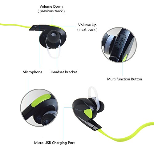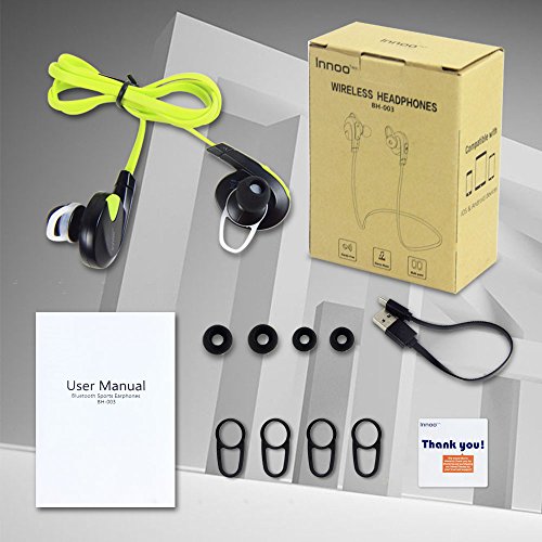 Innoo Tech Bluetooth Headphones Wireless Sport Swift Noise Cancelling Headset Stereo Earbuds Sweatproof In-Ear Earphones with Mic Compatible with iPhone 6 6 plus 5S 4S Galaxy Android Phones