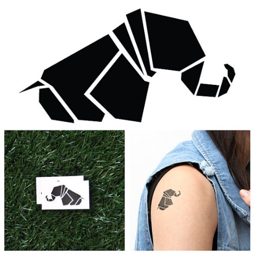 Tattify Origami Elephant Temporary Tattoo - Geo-Elephant (Set of 2) - Other Styles Available and Fashionable Temporary Tattoos - Tattoos that are Long...