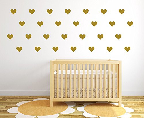 Vinyl Heart Removable Wall Decals (Gold, 3.5"x2.5") 25 Count