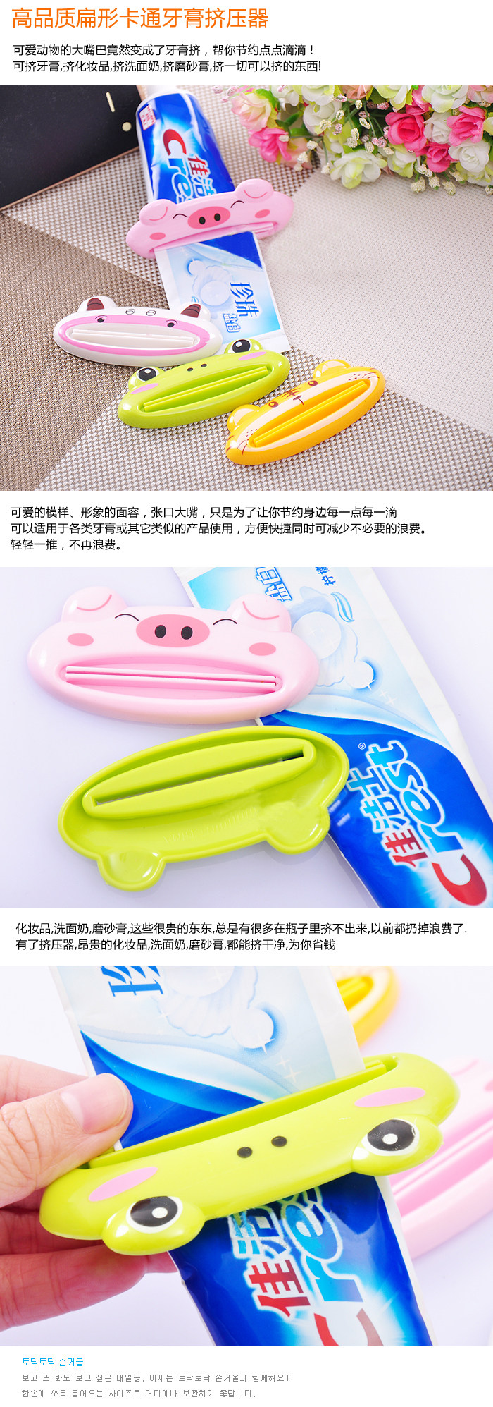 卡通动物挤压器单个装,款式多多,不同的表情,任你挑选~使用注意:不要把牙膏挤置于火等高温环境中,注意保持牙膏挤的清洁u0026nbsp;
