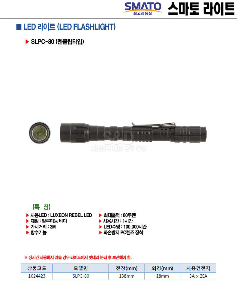FLASHLIGHT LED light SLPC-80 138mm waterproof function visible distance