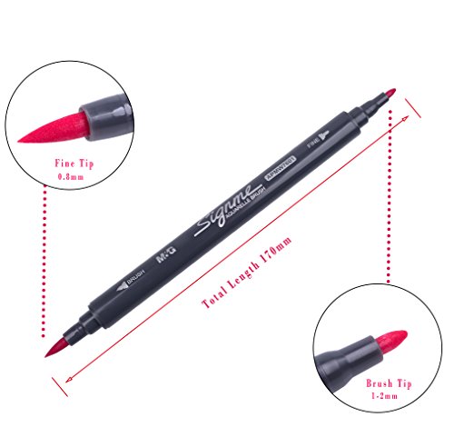 - 【DUAL TIP】Corla Art Markers has dual tip ends, perfect for everyday use and decoration or gifts for upcoming holidays. 1-2 mm brush tip for coloring, shading and blending. 0.8 mm round tip for outlining and fine detail. This set comes with a bonus zip up mesh carrying case to store them in or carry them.