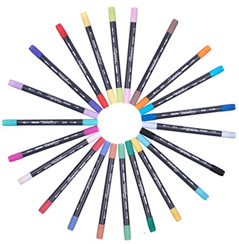 Corla Art Dual Tip Brush Pens with Free Mesh Carrying Case, Non-Toxic Water Based Fine & Brush Tips Art Marker Pens for Adult Coloring Books, Sketch Painting, Calligraphy and Kids Drawing (24 Colors)
