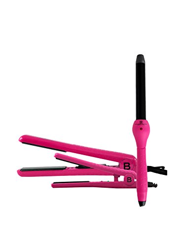 Brilliance New York Hairstyling Trio Set Flat Iron/Hair Straightener/Curling Wand Hair Salon Great With Keratin-Pink