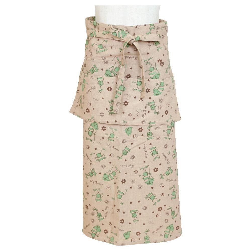 カエル柄がかわいいギャルソンロング丈エプロン