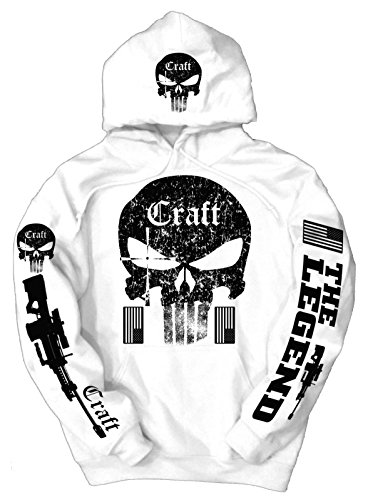 -. Binding : Apparel -. Brand : Craft -. Department : mens -. Feature : Pill-resistant & softer air-jet spun yarn / Most of the time, items arrive in 2-3 business days through lightning FAST PRIORITY shipping! / Correct sizing chart is in the 2nd picture on left of the page, NOT the one next to size selection. **SIZES TEND TO RUN SMALL. ORDERING A SIZE UP OF WHAT YOU ARE USED TO IS RECOMMENDED!** / Double-needle stitching throughout & Front pouch pocket / Perfect gift for friends & loved ones, to offer just on time for birthdays, holidays, or any occasions -. ProductGroup : Apparel -. ProductTypeName : SWEATER -. Title : American Sniper Craft Marvel Punisher Logo Hoodie