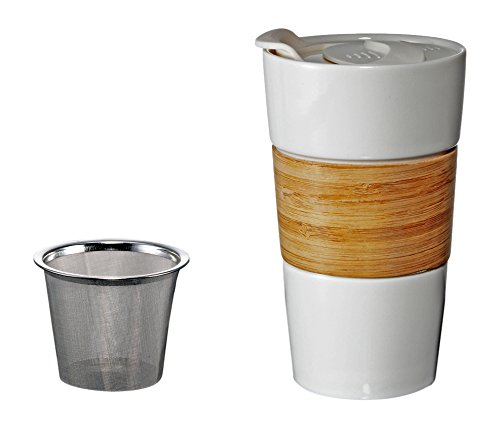 -. Binding : Kitchen -. Brand : TrYeh -. EAN : 0863311000042 -. Feature : Take your tea or coffee to go with this beautiful crafted ceramic travel mug / Bamboo wrap sleeve with a press in suction lid minimizing the risk of spillage / Stainless steel infuse help filter out your beloved loose leaf tea -. Label : Tryeh -. Manufacturer : Tryeh -. Model : 910W -. MPN : 910W -. PackageQuantity : 1 -. PartNumber : 910W -. ProductGroup : Kitchen -. ProductTypeName : KITCHEN -. Publisher : Tryeh -. Studio : Tryeh -. Title : Tryeh Ceramic Mug with Bamboo Sleeve Plus Stainless Steel Infuse, White Lid -. UPC : 863311000042