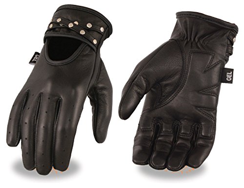 VERY SOFTPremium cow leather. Studed detailing outlining Wrist Unlined with Gel palm Open wrist with stretch We offers gloves at low prices in many different styles and designs to fit your needs, your style, and your budget!Gloves range in size XXS-3XL