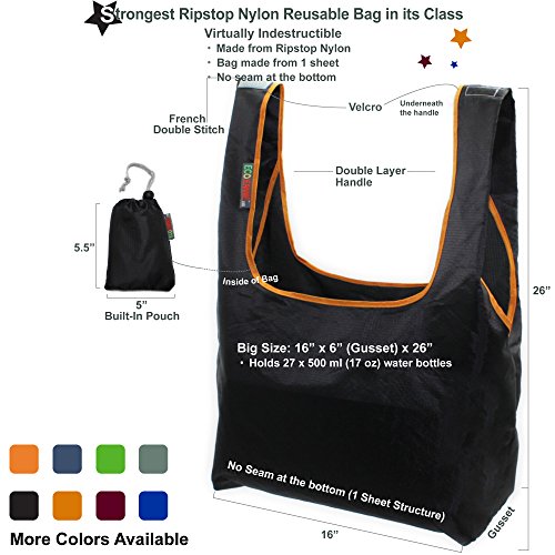 CONVENIENT : Bag is Made from 1 Sheet with NO seam at bottom, making it extremely strong, easy to handle and fold. / Convenient Built-In Pouch and Velcro on Handles