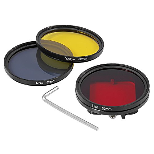 Kit includes:(3)Filters (ND4+Yellow+Red) + (1)52mm Lens Filter Ring Adapter + (1)Microfiber Cleaning Cloth + (1)Filter Carrying Pouch.